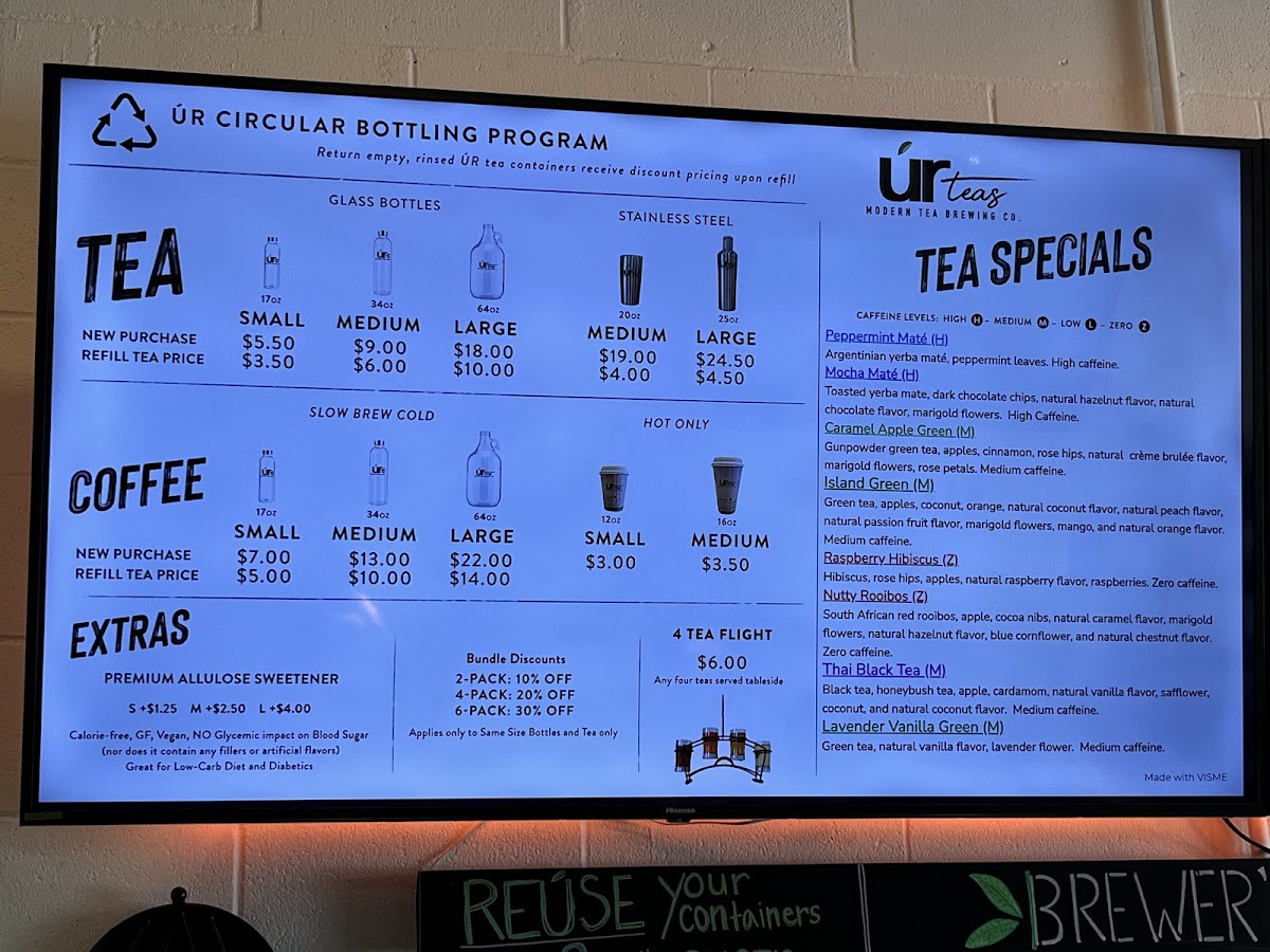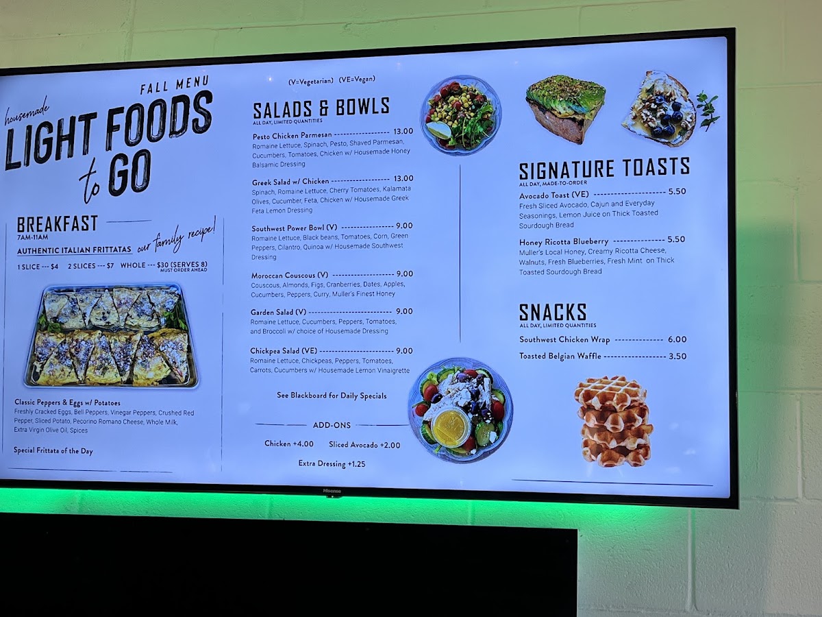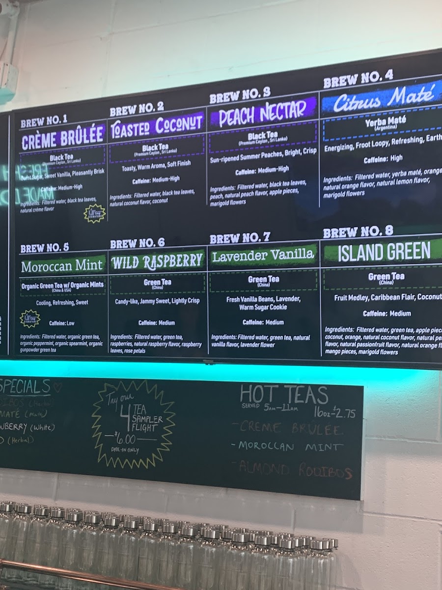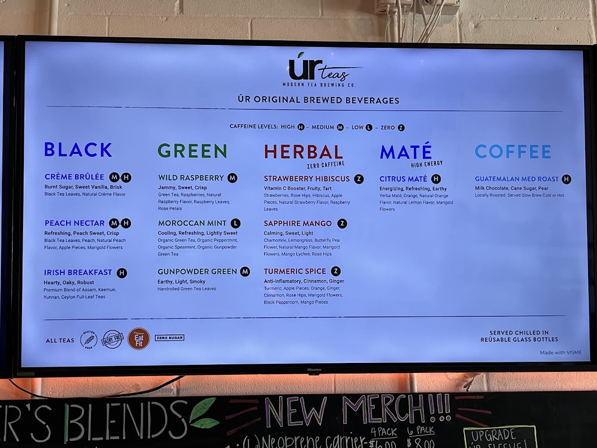 From a reviewer’s perspective, the menu at Ur Teas: Modern Tea Brewing Co. feels thoughtfully curated, balancing light bites with a strong focus on specialty teas. The breakfast offering, especially the Italian Frittata, sets a comforting tone, while the signature toasts like Avocado Toast and Honey Ricotta Blueberry add a fresh, modern touch. Heartier options such as the Southwest Chicken, Mama Karen's Chicken Salad, and Figgy Bleu W/ Chicken wraps provide satisfying variety, complemented by lighter fare like the Soup Of The Day and snacks including Homemade Energy Bar and Homemade Cookies. The tea selection truly stands out, ranging from creative blends like Peppermint Maté, Mocha Maté, and Caramel Apple Green to classic profiles such as Crème Brûlée, Peach Nectar, and Irish Breakfast black teas, alongside green options like Moroccan Mint and herbal infusions like Turmeric Spice. For something more filling, dishes like Pesto Chicken Parmesan, Greek Salad W/ Chicken, and the Southwest Power Bowl Moroccan Couscous offer balanced, flavorful choices. Unique extras like the Toasted Belgian Waffle and Figgy Bleu further round out the menu. Although prices aren’t listed, the diversity and creativity of items-from teas to wraps and salads-leave the impression of a menu designed to cater to both casual tea lovers and those seeking a light yet satisfying meal.